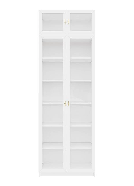 Комплектация: фасады - рамка МДФ квадро + вставка стекло простое, задняя стенка ЛДВП белого цвета, ручка ZA2391 кнопка золото K-Gold, арт. № 39512-1, петли без доводчика