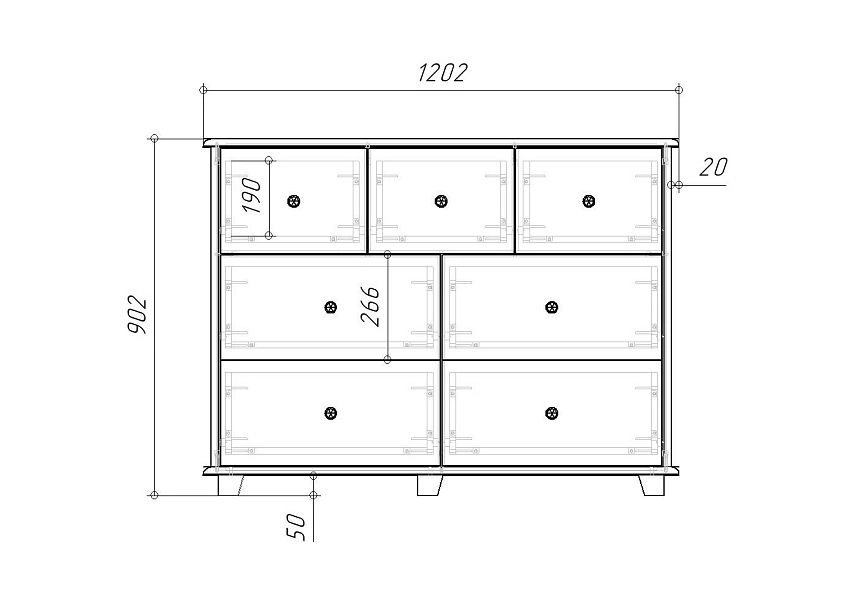 Комплектация: опоры массив дерева 50мм, ручка кнопка дерево, шариковые направляющие 100% выдвижения, фасады ящиков с фрезеровкой