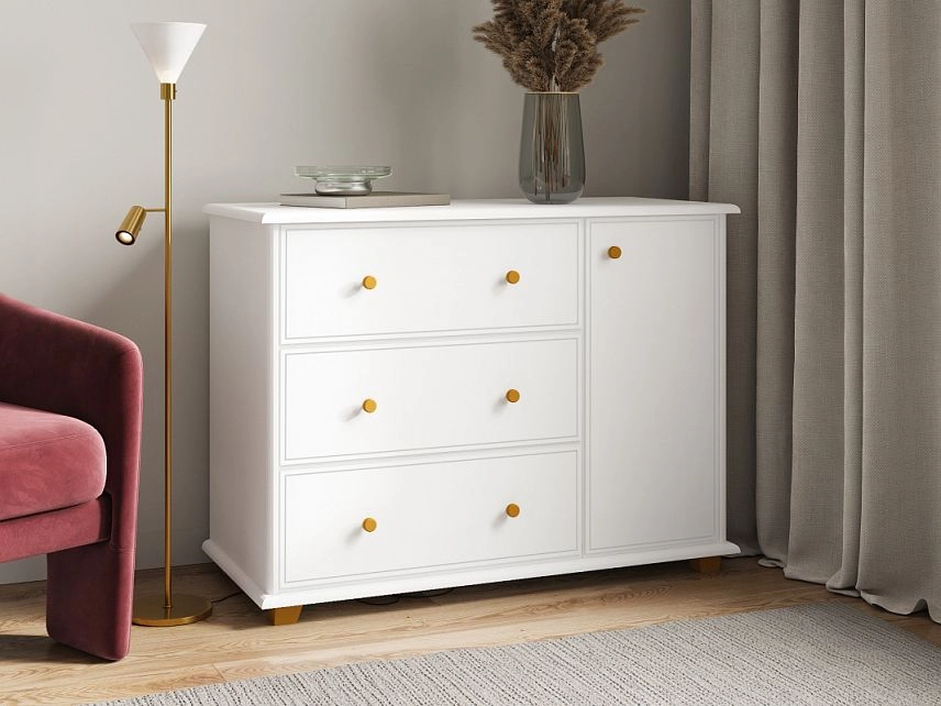 - Комод Луиза-5 Классик МДФ Белый