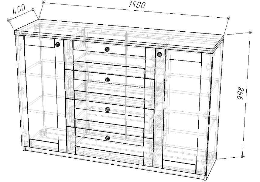 | Шкаф 4 дверный, широкий от 1500 до 2000 мм (5-6 пачек) | 450 | 1500 | 800 |