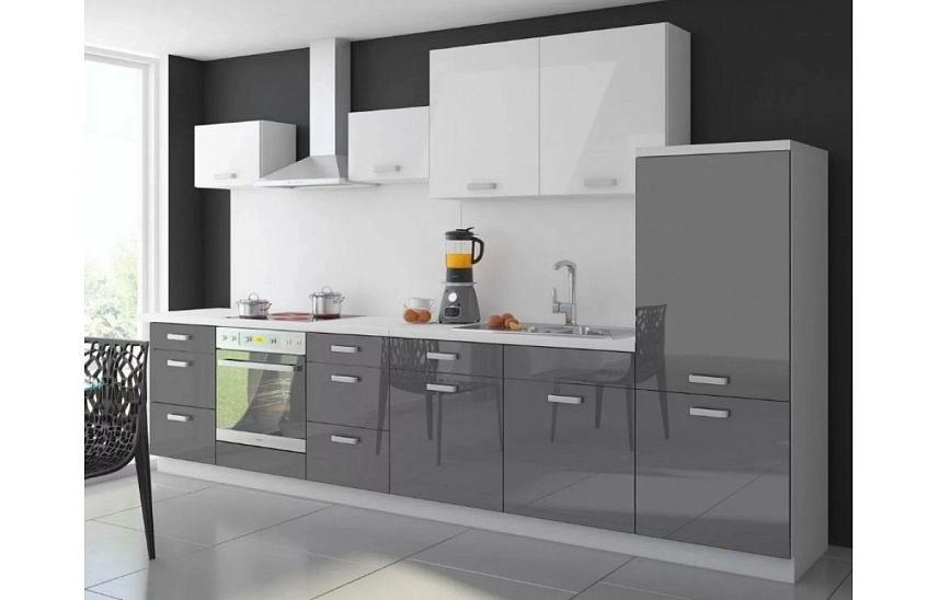 Комплектация: корпус - ЛДСП 16 мм с кромкой ПВХ 0,4 мм, фасад - МДФ 19 мм эмаль глянец, задняя стенка - ХДФ 3 мм (цвет БЕЛЫЙ), столешница (влагостойкая) - 38 мм, пристеночный литой плинтус - в цвет столешницы, посудосушитель - хром, цоколь ПВХ - 150 мм в цвет корпуса, петли с доводчиком, навесы регулируемые, шина монтажная, опоры - 150 мм, ручка по фото, ящик - металлобокс без доводчика