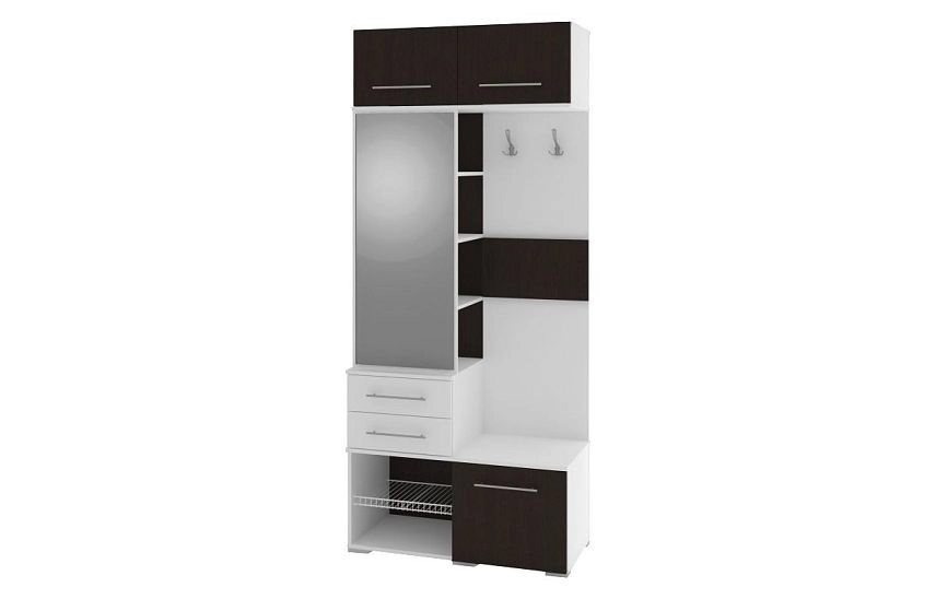 Комплектация: петли без доводчиков, направляющие шариковые без доводчиков, ручка рейлинг 128 мм хром, крючок 3 рожковый хром, механические кронштейны для откидывающихся вверх и вниз фасадов, полка сетчатая 400 мм серая, в комплекте с крепежной фурнитурой