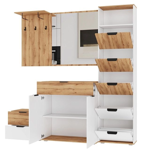 Комплектация: ручка мебельная торцевая 128 мм, черный RT110BL.1/128/150 BOYARD, арт.719962-2; крючок мебельный однорожковый ВМ-2 металлический черный АЛДИ, арт.07219; опора мебельная регулируемая прямоугольная №6 54*54*20 мм металлик АЛИДИ, арт.10196; шариковые направляющие, вешалка-кронштейн 192*75ММ черная АЛДИ, арт.07192