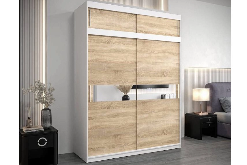 Шкаф-купе Бенито-3А в цвете дуб сонома с зеркальными вставками