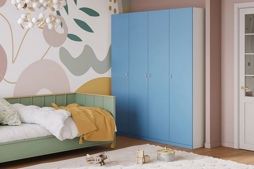 - Шкаф распашной Банни-4 Пастельно-Синий