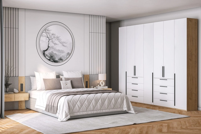 Шкаф распашной Хейсон-2 Белый Дуб Золотистый