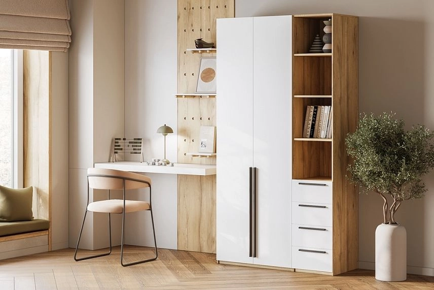 - Шкаф распашной Хейсон-22 Белый Дуб Золотистый