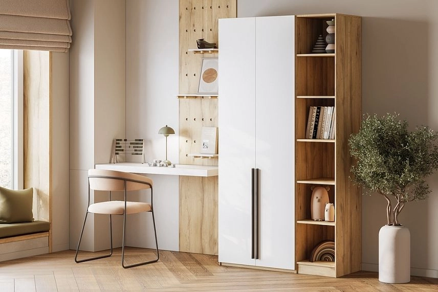 - Шкаф распашной Хейсон-23 Белый Дуб Золотистый