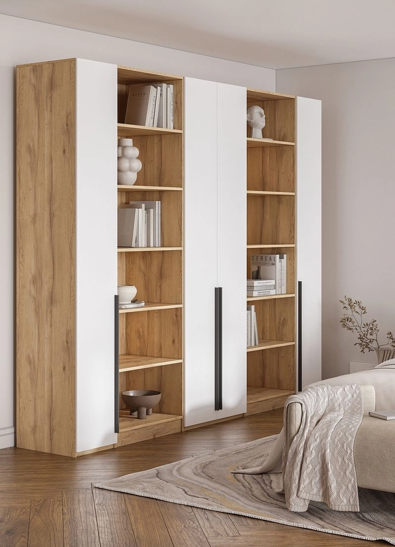 Шкаф распашной Хейсон-3 Белый Дуб Золотистый
