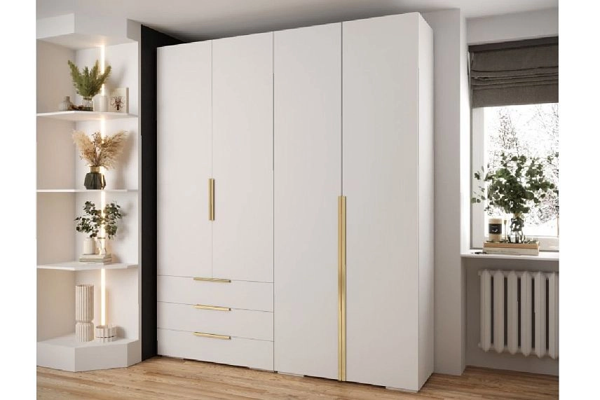 Комплектация: 2 секции П (полка под шляпы + полка + выдвижной кронштейн) + 3 ящика / 2 секции П (полка под шляпы + полка + выдвижной кронштейн + полка под обувь), шариковые направляющие 100% выдвижения, 39924 ручка торцевая СА-6/6, 864мм/997мм золотой металлик петли без доводчиков
