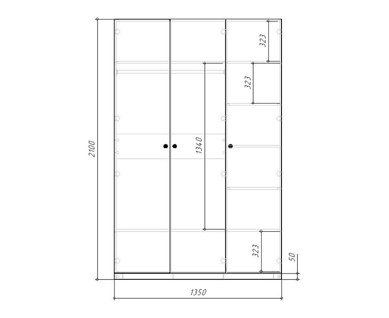 | Шкаф-купе 3 дверный (5-6 пачек) | 450 | 1400 | 700 |