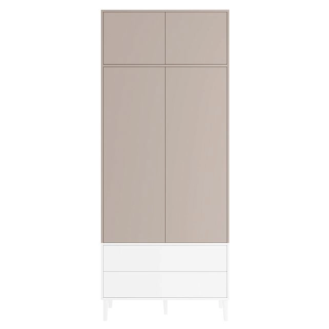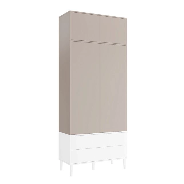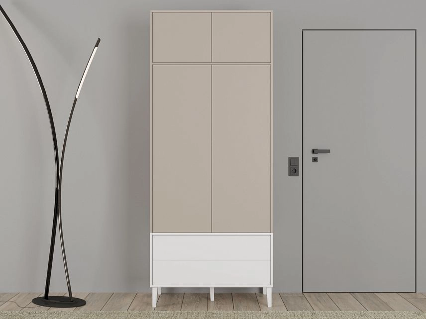 Наполнение: антресольная полка / П (выдвижной кронштейн) / Б (3 полки) / 2 ящика, петли без доводчика, направляющие 100 % выдвижения без доводчика, система открывания Push-to-open, опора массив дерева Н=150мм