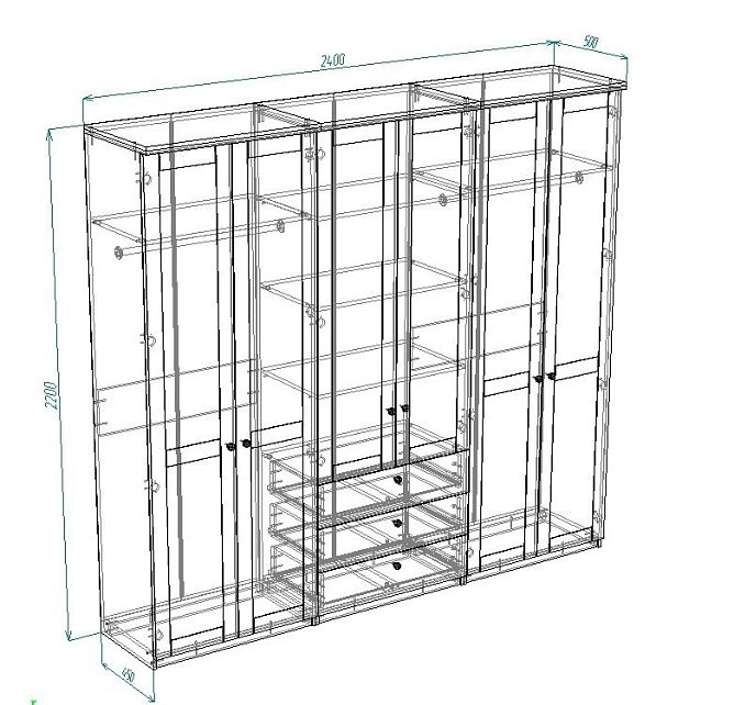 | Шкаф-купе 4 дверный (6-7 пачек) | 550 | 1600 | 800 |