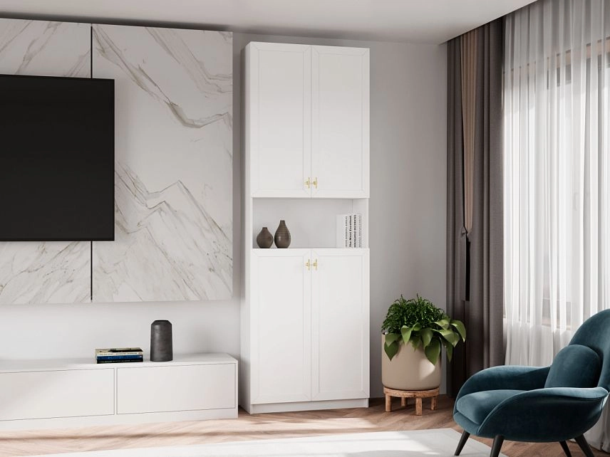 Комплектация: фасады - рамка МДФ квадро + вставка ЛДСП, задняя стенка ЛДВП белого цвета, ручка ZA2391 кнопка золото K-Gold, арт. № 39512-1, петли без доводчика