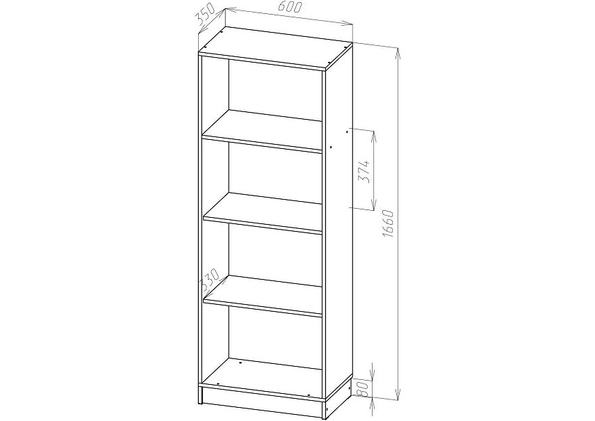 | Книжные шкафы, стеллажи от 600 мм до 1000 мм | 350 | 1000 | 600 |
