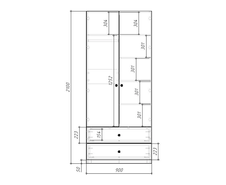 шкаф распашной Банни-2.2: 900х2100х520