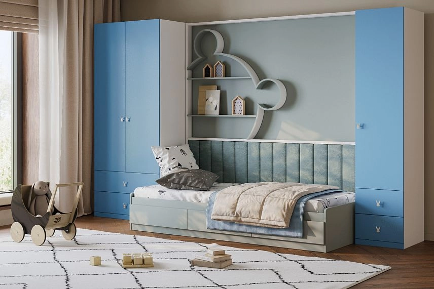 - Стенка детская Банни-8 Пастельно-Синий