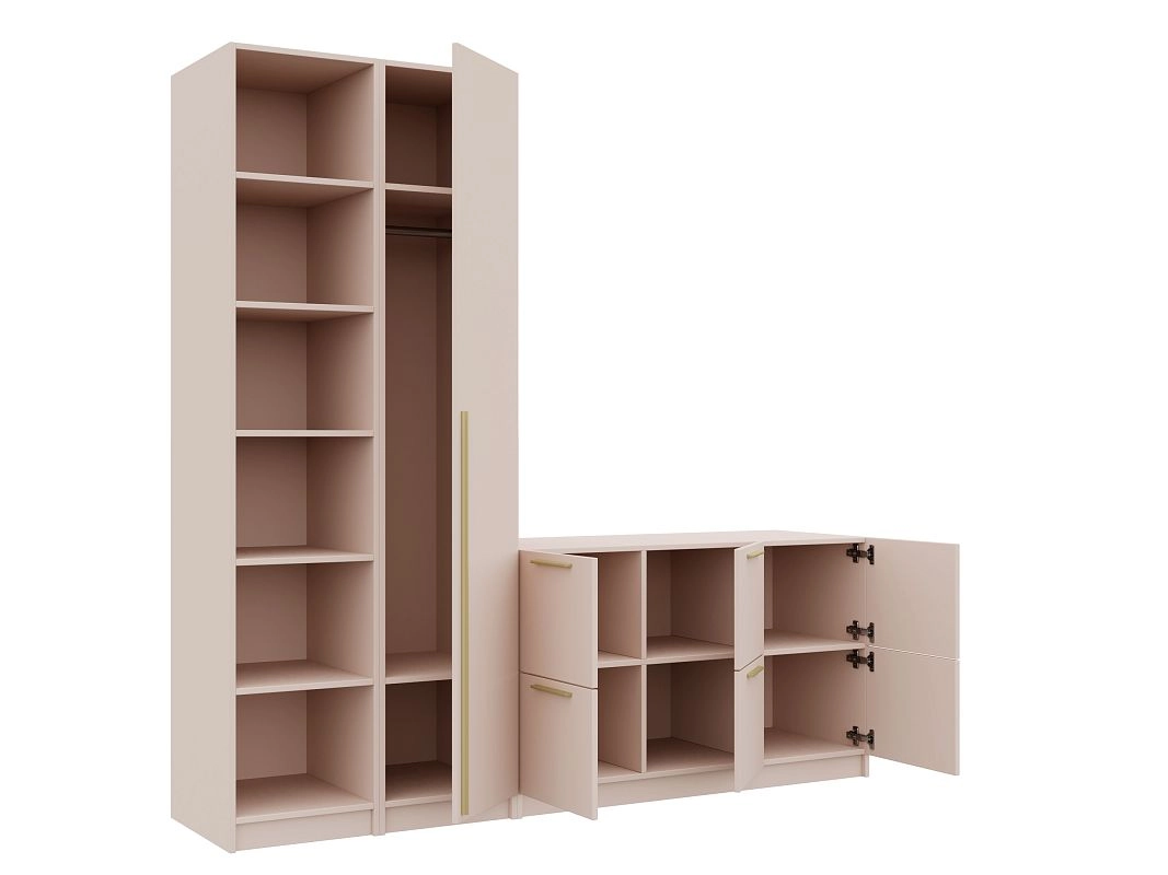 Петли без доводчиков. Направляющие шариковые 100% выдвижения без доводчика. Штанга металл Ф25мм. Ручки: Ручка CPA1 мебельная накладная м.ц.160 мм L 188мм,алюминий золото RCPА1A.188GADI, Ручка CPA1 мебельная накладная м.ц. мм L 1000мм,алюминий золото RCPА1A.1000GADI