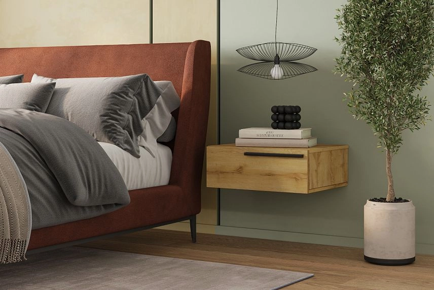 - Тумба прикроватная подвесная Лорена Пакс-2 Дуб Золотистый