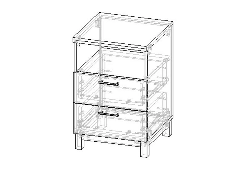 Комплектация: шариковые направляющие 100% выдвижения, фасады с фрезеровкой, ножки массив дерева