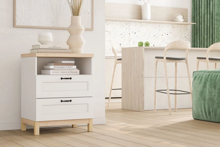 Тумба прикроватная Техас-3 в белом цвете с гладкими фасадами
